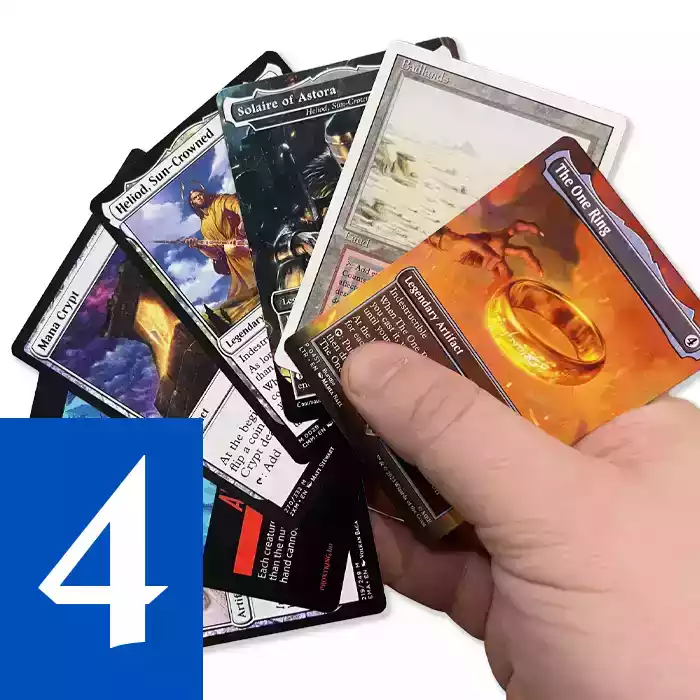 Decks, Staples, and Custom Projects: Playtest an entire Commander deck, print a Cube batch, or make a stand-in for that one card that costs more than your last grocery run. Whatever your project looks like, we can help you print it.