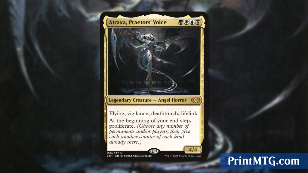 In Commander, a format known for its social aspect and use of 100-card singleton decks, proliferate can be particularly impactful due to the larger scale of gameplay and the availability of commanders that synergize with counters, such as Atraxa, Praetor’s Voice.