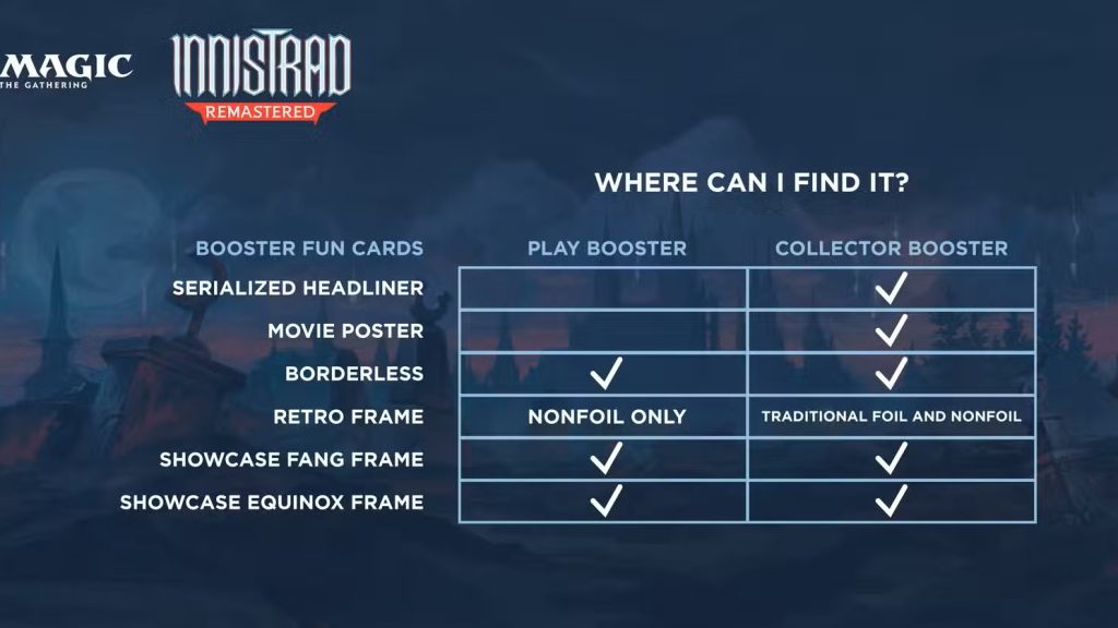 Unlike larger releases, Innistrad Remastered won’t include Bundles, Commander Decks, or Pre-Release Kits. Instead, players can get their hands on the cards through Play Boosters and Collector Boosters.
