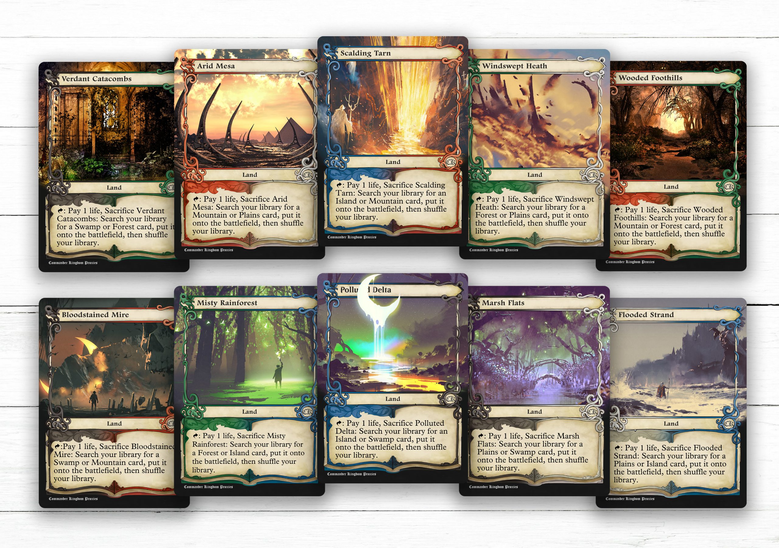 For collectors and players seeking to enhance their gameplay with custom art, a custom art fetch lands set could offer not only functional value but also aesthetic appeal, celebrating the deep strategic roles these cards play in Magic: The Gathering.