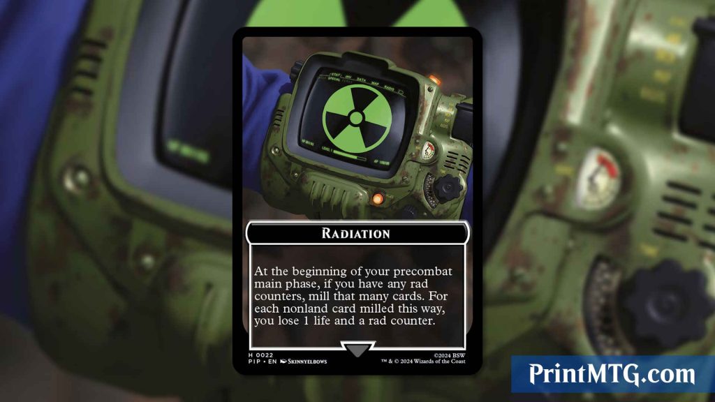 Rad counters are unique because they are placed on players rather than objects, a departure from most other counters in MTG. This distinction emphasizes the personal risk and involvement in the game’s nuclear fallout theme. Rad counters can empower certain cards, providing strategic depth and decision-making to the gameplay. However, they also carry the inherent risk of “death by radiation,” mirroring the lethal nature of excessive radiation exposure in the real world and in the Fallout universe.