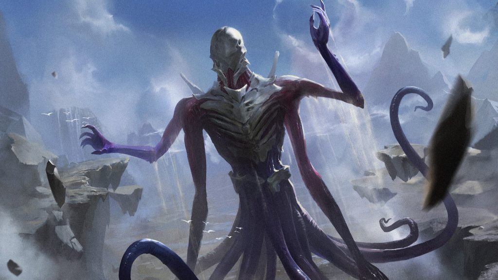 Creatures outside of our understanding are often represented as being colorless. The Eldrazi, which exist outside of the Magic multiverse and are the closest parallel the game has to Cthulhu, are all colorless. The block of sets they most appeared in, Battle for Zendikar, even had a colorless-matters theme and introduced Wastes, a colorless basic land. You could also put the colorless dragon planeswalker Ugin into this category, as he is an immensely powerful and inscrutable being of untold power.