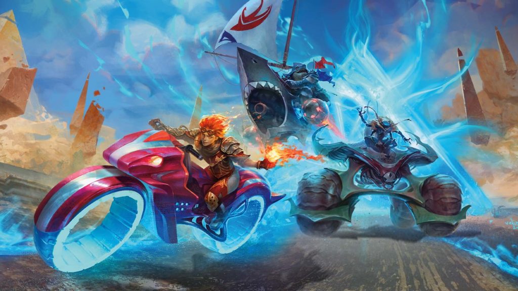 Aetherdrift is officially an in-universe Magic set. It’s also literally pitched as a multiversal race “across three planes,” which is how you get Magic branded Mario Kart energy without technically licensing Mario Kart.